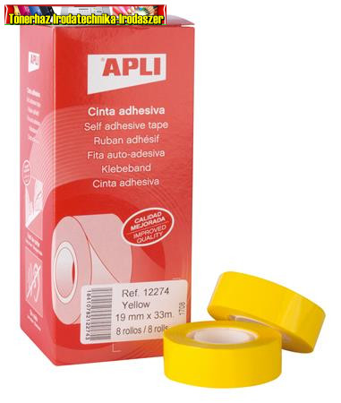 Ragasztószalag, 19 mm x 33 m, APLI, sárga (12274)