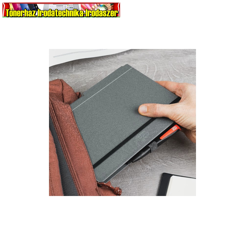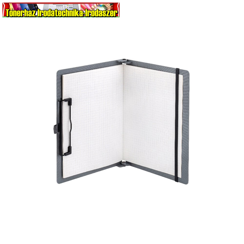 A/5 méretre összehajtható, A/4 méretre kihajtható, rugalmas rögzítőpánttal, tolltartóval felszerelt irattartó. Vízszintesen és függőlegesen is használható, 30 lapig.